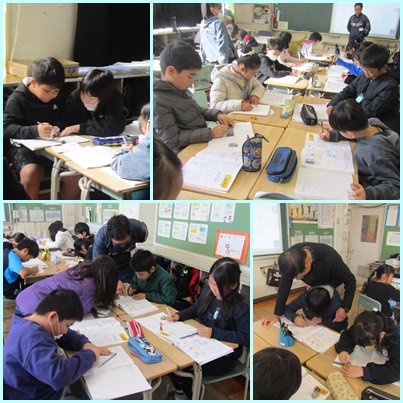 直方体・立方体の特徴、見取り図・展開図のかき方、面や辺の関係などを学習しています。
