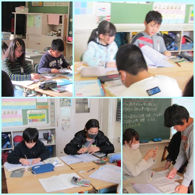 直径や円周を求める公式や直径と円周との比例関係を使って問題を解く学習をしています。
