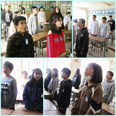 音楽の授業では卒業式で歌う歌の合唱練習をしています。