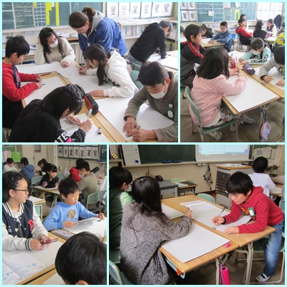 大きな方眼紙に教科書を参考にしながら直方体の展開図をかいてみます。