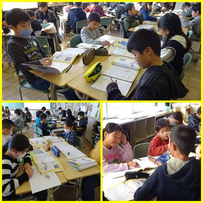 4年生の理科「物のあたたまりかた」の学習です。水や空気、金属は熱した部分から、どのように温まっていくのか温まり方をまとめ、「たしかめよう」問題をグループで確認しながら解いていきます。