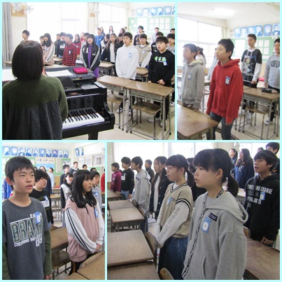 今日は校歌の練習をしています。