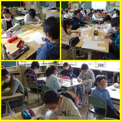4年生の算数「立方体と直方体」の学習です。展開図をかきます。どんな立体になるのかを考えて、展開図をかいていきます。