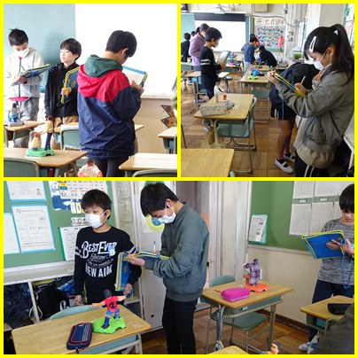 6年生の図工「12年後のわたし」の学習です。出来上がった作品を鑑賞しあっています。友達の作品のよさや工夫をかきます。