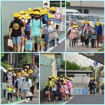 通学団でおよそ半分の人数になるように分けて登校日を決めてあります。