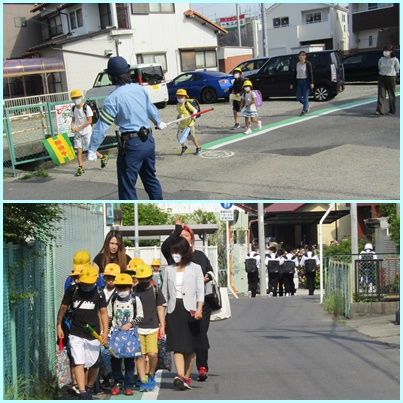たくさんの保護者の皆さん、パトロールボランティアの皆さん、警察の方も子どもたちの登校を見守ってくださいました。