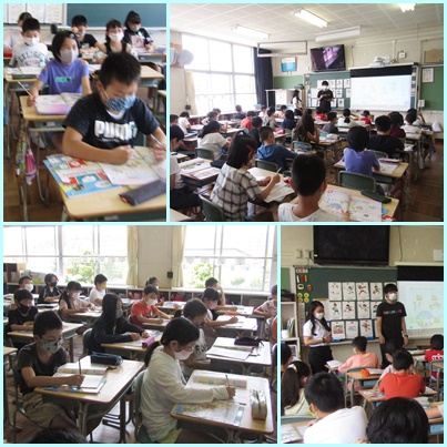 学校生活の様々な場面について英語で説明する言葉を聞き、意味を聞き取る学習です。