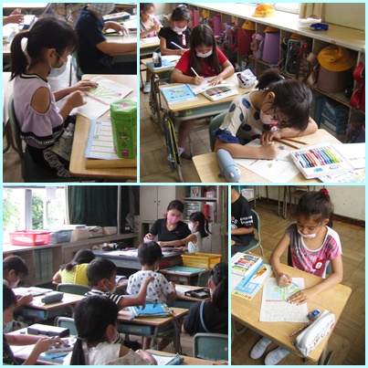 学年園の野菜を観察してきて、“見つけたよカード”に記録しています。