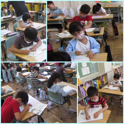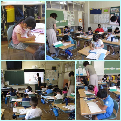 1文字ずつ書き順や字形の整え方を確認してノートに書いてみます。