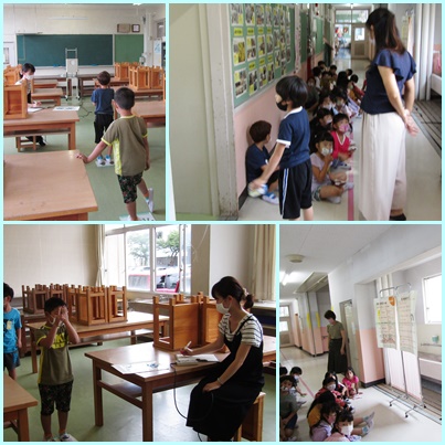 廊下で説明を聞いた後、床のマークにしたがってきちんとソーシャルディスタンスをとって順番を待ちます。