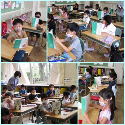 「あいうえおであそぼう」という言葉遊び歌をリズムよく音読したり、自分たちで言葉遊び歌を作ったりする学習です。
