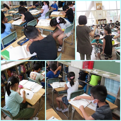 見つけたことを、メモをもとに、「初め」「中」「終わり」の文章構成などに気をつけながら、みんなに知らせる文章を書く学習です。