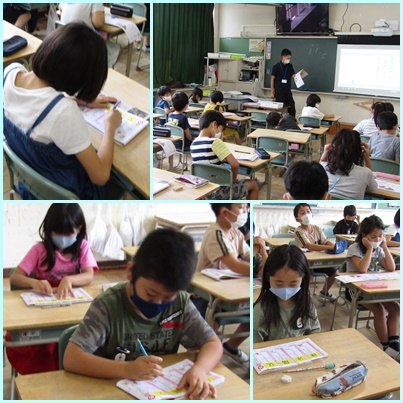 漢字の成り立ちをみんなで確認したり、漢字ドリルに書き込みをしたりして漢字を覚えていきます。