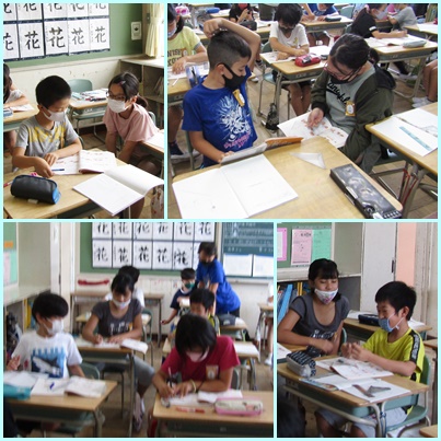 以前のように頭を寄せ合って・・・とはいきませんが、ちゃんと距離を意識しながらも友だちと相談しながら学びを深めています。