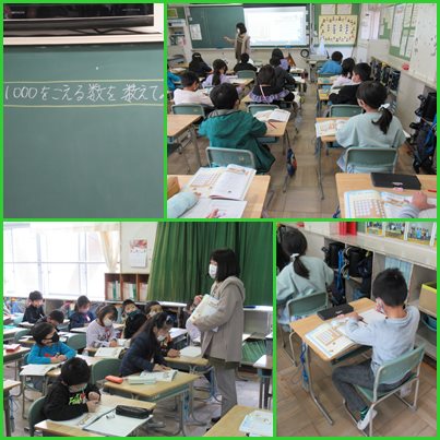 「100のまとまり」がいくつで1000かな。余ったのはいくつかな。
