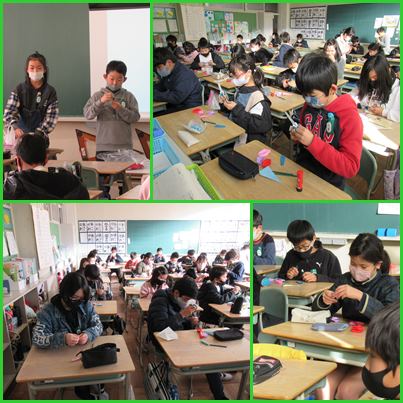 代表委員の説明を聞きながら、5年生の担当分を作っています。後日、下級生が作ったものと合わせて完成の予定です。