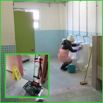 用務員さんが、トイレの掃除をしてくださっています。