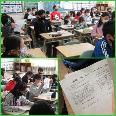 親切・おもいやりなど、主として人との関わりに関することについて、これまで学習してきたことを振り返っています。自分がどんな感想を書いてきたかを読み返し、自分の成長の様子を自覚します。