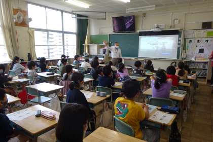 今日は講師の方を招いての地球温暖化防止教室。