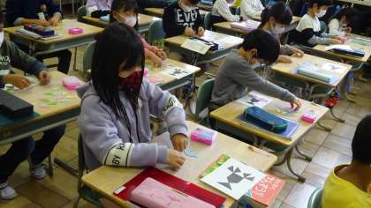 算数「かたちづくり」の学習中。