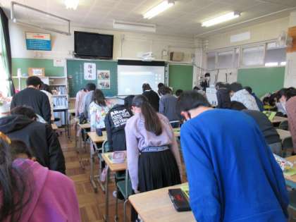 各学年の代表者が修了証を受け取り、校長先生のお話を聞きました。校歌は・・・残念ながら歌えず、聴くだけです。歌詞を見ながら、心の中で歌いました。