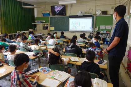 3組は国語「ともだちをさがそう」。伝えるべきことを確認中。