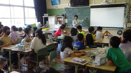 種子の発芽と水や温度、空気との関係を調べる条件を考え、実験計画を立て、ただ今はその準備中。インゲンマメの種子をバーミキュライトを入れた容器に入れたり、脱脂綿をしいた容器に入れたり。種子を入れたそれぞれの容器を決めた場所に設置し、実験開始です。