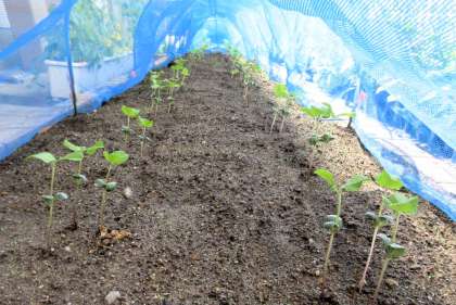 3年生が総合的な学習で植えた大豆も芽を出し、本葉を広げました。
