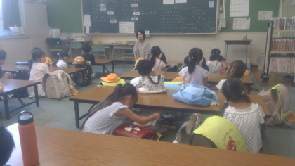 今日は出校日。みんなの元気なお顔が見られて、とてもうれしかったです!宿題を出したり、夏休みにしたことを話したりしました。残りの夏休みも、安全に過ごしてくださいね。