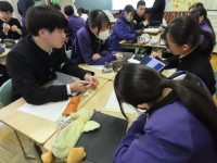 1年生の家庭科では「自分でできる環境に配慮した住生活」についてグループごとに考え...