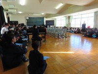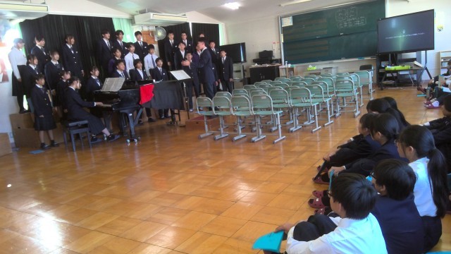 教室のように反響しない体育館では、どこまで自分たちの声が響くのか確かめる貴重な機会です。