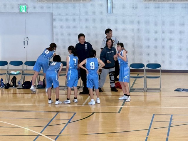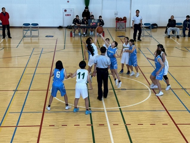 12月6日(土)に行われた愛日新人大会、会場校である白木中学校との対戦となりました。試合開始早々先制点を決めて流れに乗りたいところでしたが、初戦の緊張からかシュートタッチが悪く思うように得点が伸びない第1ピリオドでしたが、それでも13対6とリードして第2ピリオドにのぞみました。この日はシュートを落としても粘り強くリバウンドにからみ、積極的にゴールをねらう姿勢を貫きました。人数ギリギリの女子バスケ部はファールトラブルは命取りになりますが、ファールを怖がらず全力で相手にプレッシャーをかけるディフェンスが功を奏し、徐々にリズムにのりいい流れで試合を進めていくことができました!インサイドを支える2年生と速攻でよく走る1年生、走るバスケット展開で前半を終えるころには大量リードを奪います。疲れがみえはじめた後半も守りにいくことなく、積極手にゴールに向かい、最後まで走り抜きました!5人のうち、4人が3つ以上ファールし、2年生2人は退場してもおかしくないギリギリの試合でしたが、それだけ一生懸命相手に食らいついたのだと思います。最後は圧勝で2回戦進出を決めました!試合が終わったとたんにキャプテンが泣き崩れ、ほかのメンバーも号泣する姿がありました。それだけ今まで苦労し、勝利した喜びで感情をおさえられなかったものだと思います。胸が熱くなる想いがしました。このチームでやってきて本当によかったなと思えた瞬間でした。送迎、応援にかけつけてくださった保護者の皆さまには心より感謝します。本当にありがとうございました。来週末は2回戦、3回戦と続きます。勝ち上がることは簡単なことではありませんが、今日から一週間猛練習をし、さらにレベルアップをはかりたいと思います。応援してくれるみなさんの気持ちに応えられるよう、そして何より毎日遅くまで練習している自分たちの努力の成果を発揮できるよう頑張っていきたいと思います。