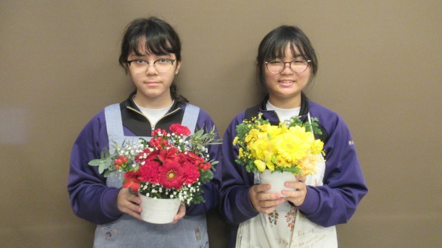 ロッドに髪を巻き付ける練習、パンの袋詰め、フラワーアレンジメント、花のラッピングなど、今日も普通ではできない貴重な体験をさせてもらいました。