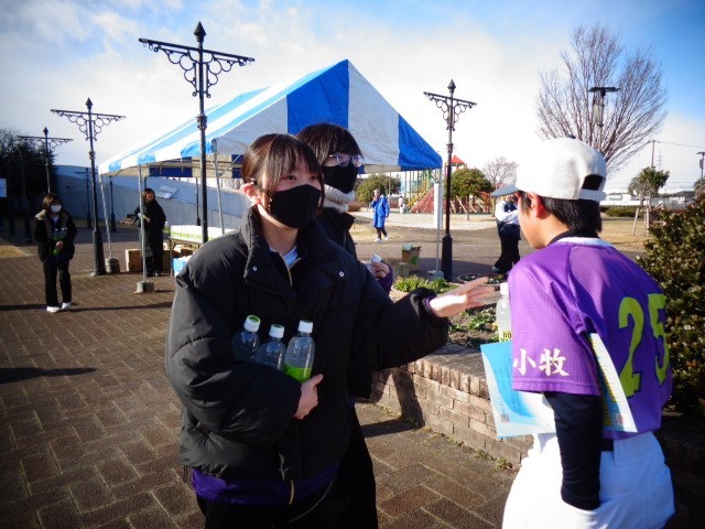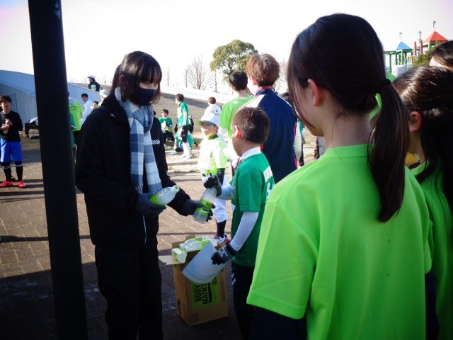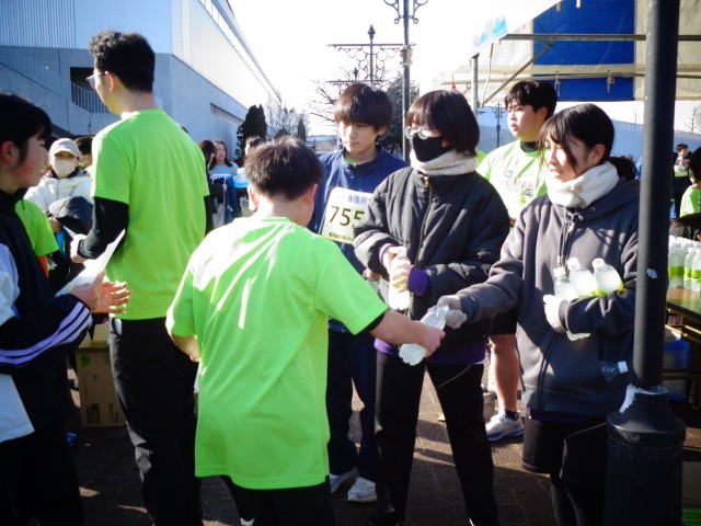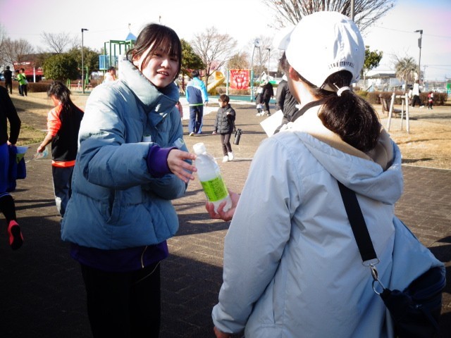 シティマラソン2kmコースの参加者の皆さんへ、飲み物を配るお手伝いをしました。