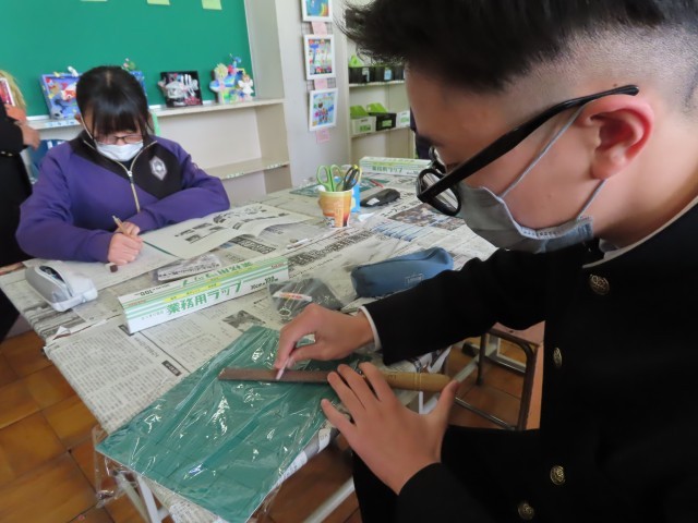 堆朱工芸のキーホルダー作りに挑戦しました。