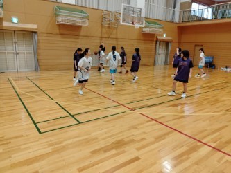 2月28日(土)女子バスケ部は味岡中学校で練習試合を行いました。お互いに人数が少ないチーム同士での試合でしたが、この日は