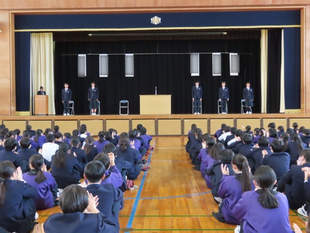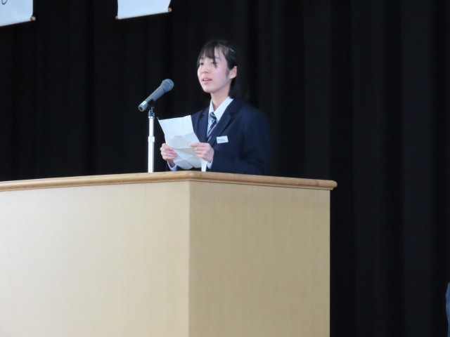 生徒会役員立候補者の立会演説が行われました。