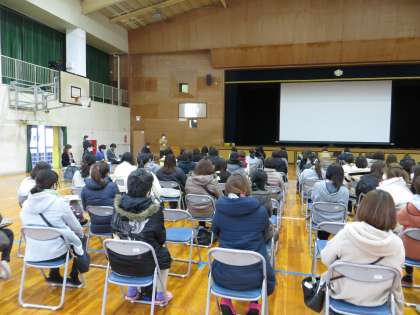 令和3年度入学する生徒のための入学説明会を行いました。換気のため窓を開け、寒い体育館で行いましたが、多くの保護者の方が参加してくださいました。ありがとうございました。令和3年度の入学式は、4月7日(水)です。お子様の入学を楽しみにお待ちしています。