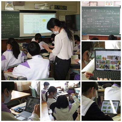 野菜のどんなことを調べるかは、自分で決めます。食材としての栄養価、調理法、鮮度を保つ保存法、栽培方法など、様々なテーマがありました。教科書、書籍、インタビュー、インターネットなど調べ方も工夫します。