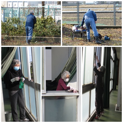 テニスコートの周りに生えていた木の枝を切っていただき、すっきりしました。体育館の窓も綺麗に磨いていただき、明るくなりました。いつも ありがとうございます。