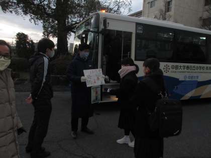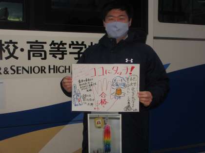 2月3日(水)岩崎中学校の駐車場には高校から出迎えのバスが来ており、3年職員みんなで出発を見送りました。写真にある合格タッチの写真は、3年職員による寄せ書きです。そこにタッチしていけば御利益がきっとあると子どもたちは笑顔で出発していきました。3年生のみんな今日も頑張ってください!