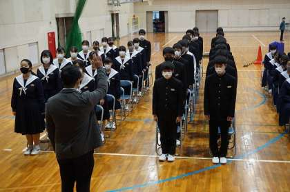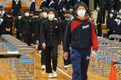 卒業式に向けて 公開日 2021/02/15 更新日 2021/02/15 3年 今日から1・2年生は学年末テストです。この3日間は、3年生は単独で卒業に向けての様々な取り組みを行っていきます。 1・2時間目に、卒業式の入退場や隊形移動の練習、証書授与の練習などを行いました。明日は、旅立ちの言葉の練習をする予定です。 岩崎中学校に登校できるのは、今日を含めてあと12日となりました。1日1日を大切にして過ごしてほしいと思います。 いいね(6)