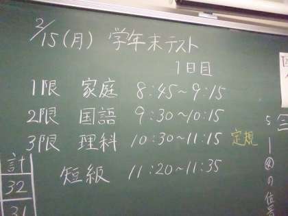 今日から学年末テストが始まりました。