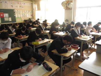 3年生は3年間で最後の学習コンクールを行いました。これまでこつこつ積み上げてきた学習の成果を発揮することはできたでしょうか。3年間の節目の学習コンクールです。全員で笑って合格できるといいですね。