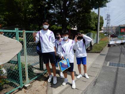 3組の探検は、岩中周辺・村中小学校方面です。日特の駐車場で、何やら測量中?!