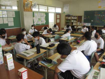 昨日の学年集会をうけて、授業に対する意識も高まったように感じられました。社会の授業の様子です。「人類の進化」について考えるという課題に対し、子どもたちは興味津々、「猿はなぜ人類に進化することができたのか」というテーマについて話し合い、考えを深めました。