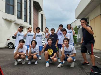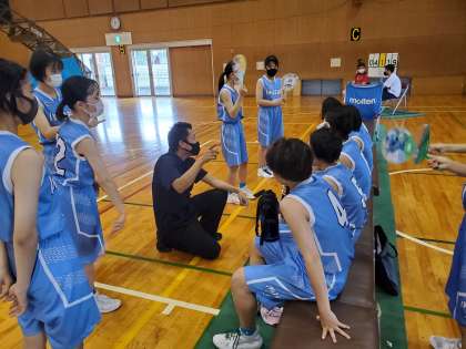 7月4日(日)に勤労センターで行われた市内大会準決勝、愛日大会出場を懸けた試合、岩中女子バスケ部は桃陵中学校と対戦しました。この試合に勝てば愛日地区大会、その気迫がこもったプレイがチームにいい流れを生み出しました。序盤から相手を突き放す展開となり、第1ピリオドを31対4の怒濤のスタートをきると第2ピリオドでもそのままのリズムで55対11と大量リードを奪います。この日はインサイドが執拗にマークされ、思うようにゴール下にボールがまわりませんでしたが、ボールを回し外からの攻撃やドライブが決まり、最後まで走り抜くことができました。後半相手の足が止まったときも全員が走りとおし、快勝することができました。最終ピリオドに出場した1年生が初得点を奪うなど、点差をひろげてからもベンチは大いに盛り上がりました。終わってみれば全員出場の116対25という結果でした。来週の決勝戦は春の大会で惜敗した北里中学校と対戦することが決まりました。なんとか優勝できるように明日からの一週間さらに気持ちをこめて練習をしていきたいと思います。