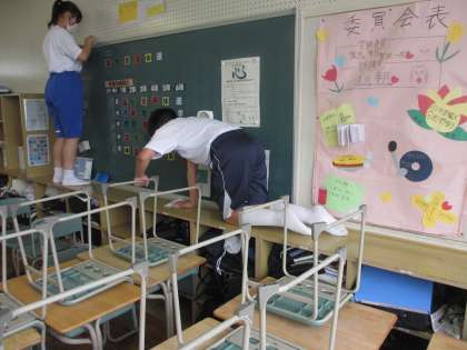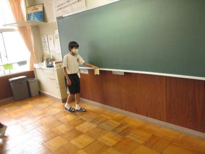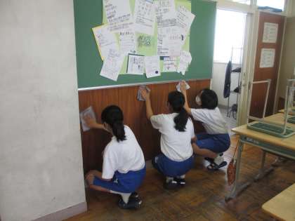 今年の1年生は本当に一生懸命掃除をします。教室の隅々まできれいにしようと意欲的に取り組む姿は見ていてとても清々しいものです。掃除ができる人は人として素晴らしいと思います。教室をきれいにすることで、心も磨かれているように感じます。教室をいつもきれいにしてくれてありがとう。気持ちよく授業を行うことができることに感謝します。