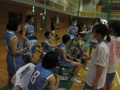 7月17日(土)日進スポーツセンターで行われたバスケットボールの愛日大会、初戦の相手は春日井2位の春日井中部中学校、試合開始直後、緊張からか動きがかたく、いつもの感じが出せずにリードを許す展開となりましたが、その後少しずつリズムをつかみ、前半は39対11と大量リードを奪い、後半からは下級生主体の控えメンバーが活躍し、