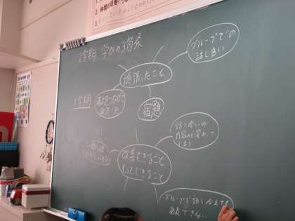 6限の学では、一学期に決めた「学びの三箇条」の見直しをしました。より良い学習にするため、出来たことと出来なかったことをふり返り、新しい三箇条を考えます。